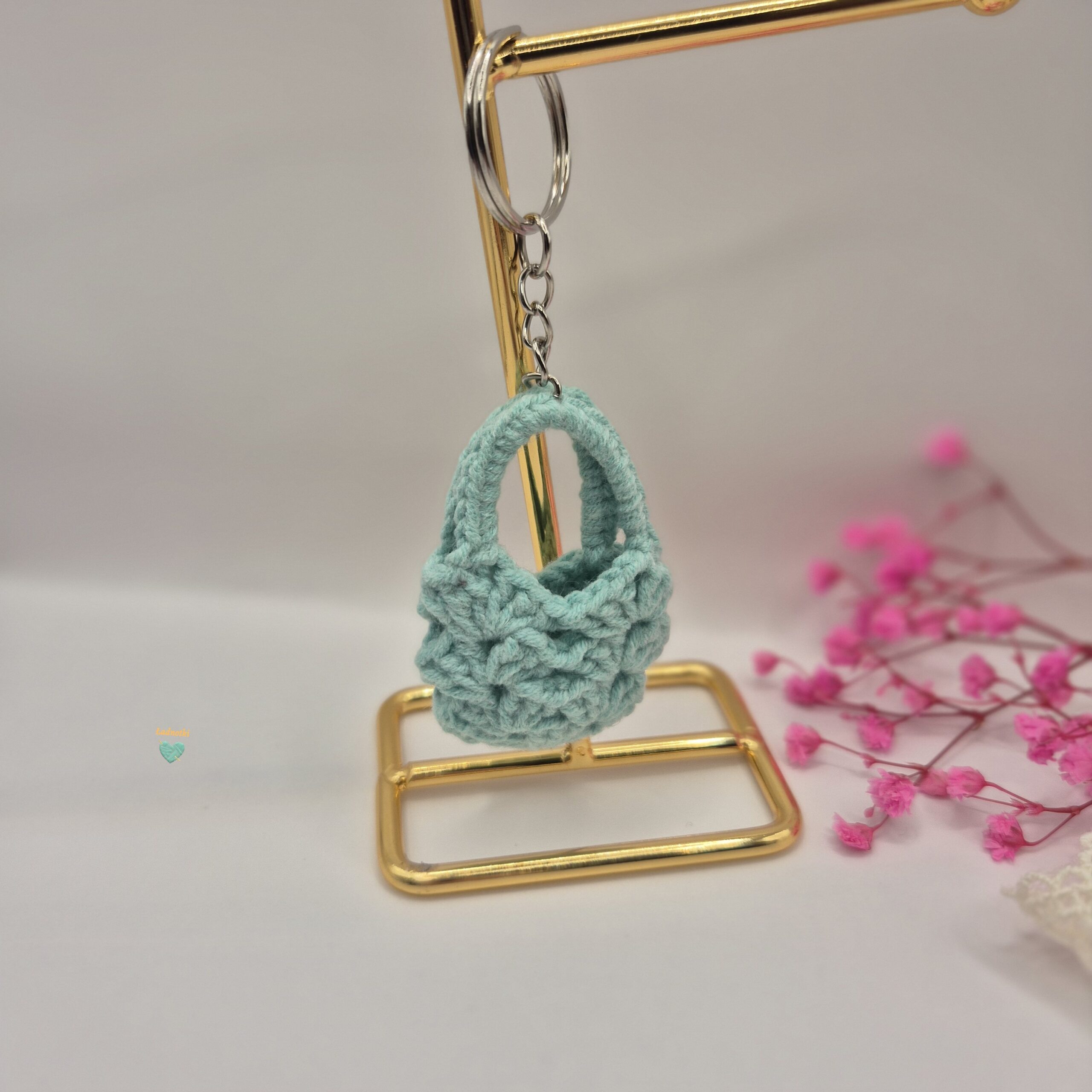 Brelok szydełkowy – mini torebka miętowa 🌿🔑